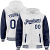 White Powder Blue-Navy Bomber Full-Snap Varsity Letterman Two Tone